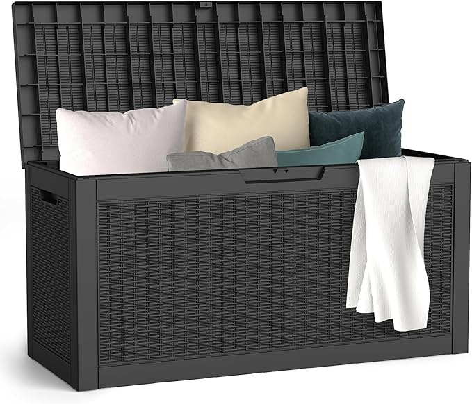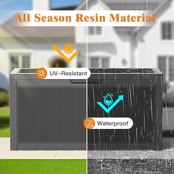 - All-Weather Protection: Our deck box is made from durable high-density resin, offering superior UV, rain, and snow resistance. No matter the weather conditions, it provides unwavering protection for your belongings, keeping them safe and dry.
