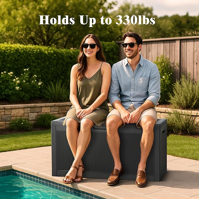 - Extra Seating or Table: This deck storage box not only serves as a secure and portable storage solution but also doubles as a sturdy patio seat or table, supporting up to 350 lbs. It combines practicality with style, offering a versatile addition to your space.