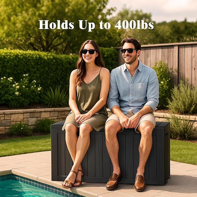 - Extra Seating or Table: This deck storage box not only serves as a secure and portable storage solution but also doubles as a sturdy patio seat or table, supporting up to 350 lbs. It combines practicality with style, offering a versatile addition to your space.