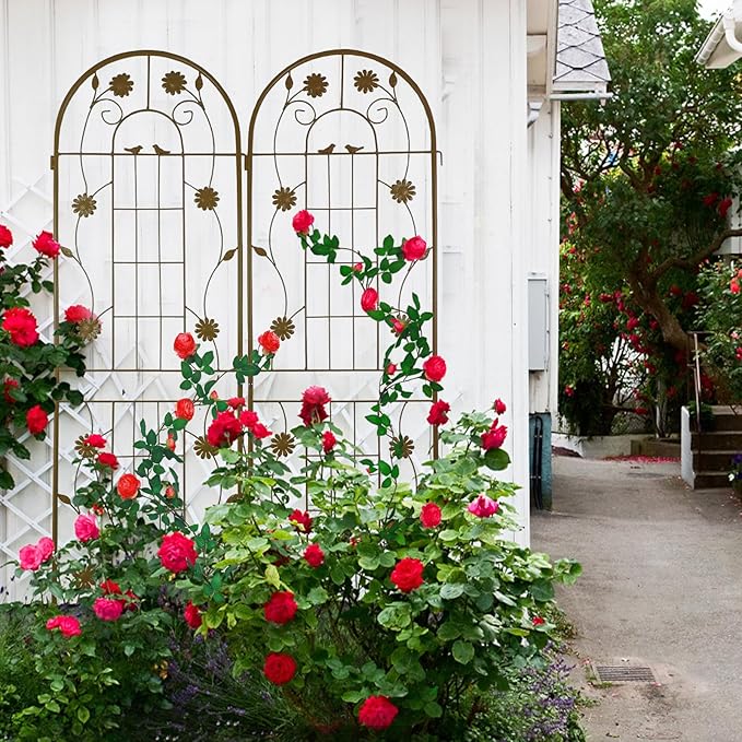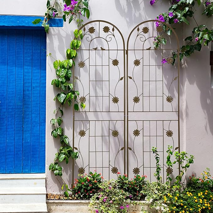 - Multi Purpose Garden Trellis: This outdoor garden trellis provides support for climbing plants, such as ivy, rose, cucumber. The brown garden metal trellis can be used to form privacy screens.