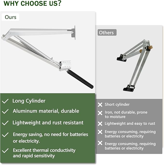 - Effortless Installation: Greenhouse automatic roof vent opener features a compact 13.4-inch/34 cm long temperature-sensing cylinder. Simply secure the cylinder, adjust its position well, and mount on a sun-exposed area of your greenhouse frame using clamps or screws.