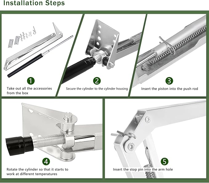 - Versatile Applications: Automatic greenhouse vent opener automatically adjusts ventilation based on sunlight intensity because of indoor high temperature, greenhouse vent opener is ideal for cooling greenhouses in summer and boosting growth efficiency for flowers, organic vegetables, berries, potted plants, and more. Perfect for home gardening, remote farms, smart agriculture zones, sustainable energy projects, industrial greenhouses, farm ventilation, and educational institutions and so on.