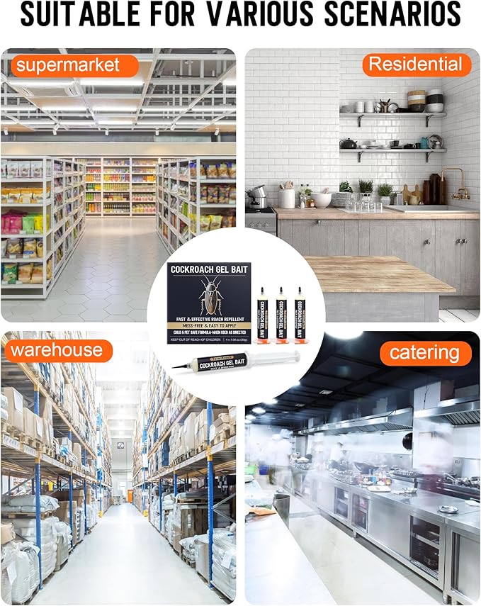 - Easy-to-Use Gel Bait Pen:Convenient pen-style applicator for precise placement. Apply gel along baseboards, corners, and entry points where cockroaches hide.