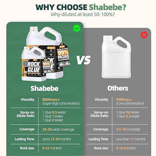 - 【Reliable & Weather-resistant】All Shabebe Mulch Anchor/Rock Glue /Gravel Glue products have a 100% satisfaction guarantee. This Rock adhesive minimizes erosion due to intense rainfall and even prevents leaf blowers from dispersing your Rock. Simplify your life and put an end to the continuous sweeping and maintenance of your landscape!