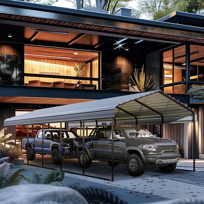 - 【Heavy-Duty Outdoor Metal Carport】 Unlike traditional carports with fabric covers, we’ve upgraded our heavy-duty carport canopy to feature a galvanized steel roof, enhancing its ability to withstand any weather conditions. Constructed with a heavy-duty galvanized steel roof and a powder-coated tube frame, our outdoor metal carport canopy is rust-resistant, solid, and sturdy.