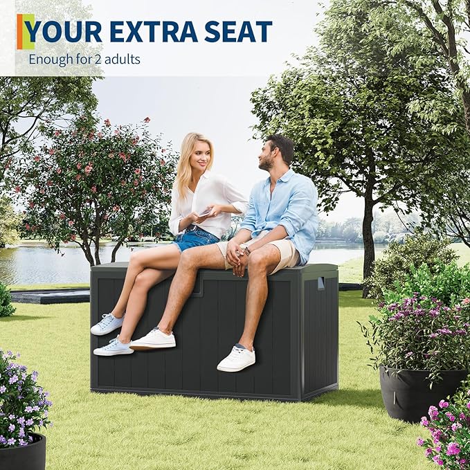 - [VERSATILE STORAGE SOLUTION]Our versatile patio storage bins are perfect for storing everything from garden tools and pool accessories to cushions and beach towels. Not only does this storage solution keep your belongings organized, it can also be used as a stylish side table, extra seating, or even a footstool. Its sleek design complements any outdoor setting, enhancing the aesthetics of your patio while providing easy access to your essentials. Keep your outdoor space practical and tidy.