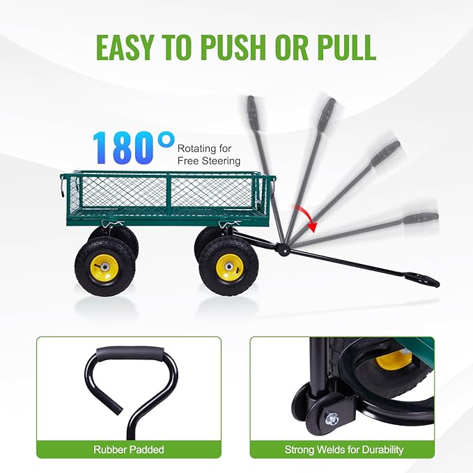 Backyard Expressions Heavy-Duty Steel Garden Cart – 400 lb Capacity, Removable Mesh Sides, Flatbed Convertible Yard Wagon with 10" Pneumatic Tires
