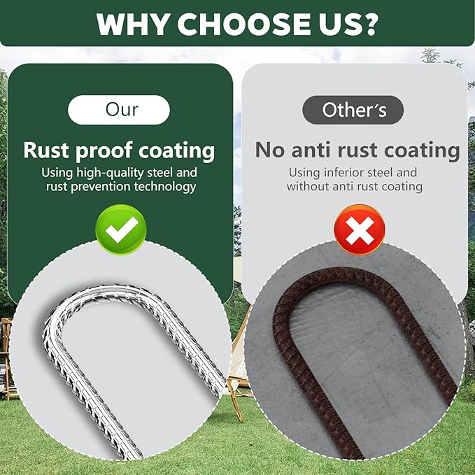 - Wide Applications: Versatile and reliable, our lawn stakes are perfect for a variety of outdoor projects. Whether you're securing tents, tarps, or landscape fabric, trust in their reliability and versatility for all your anchoring needs