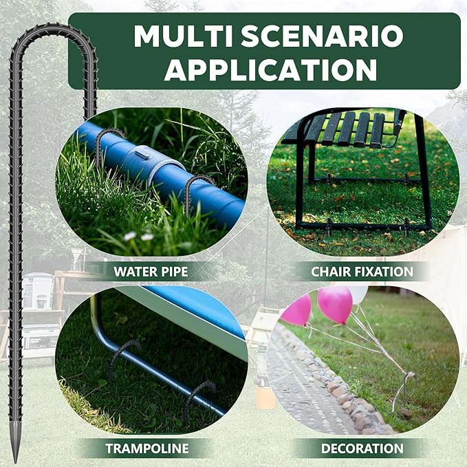 - Wide Applications: Versatile and reliable, our lawn stakes are perfect for a variety of outdoor projects. Whether you're securing tents, tarps, or landscape fabric, trust in their reliability and versatility for all your anchoring needs