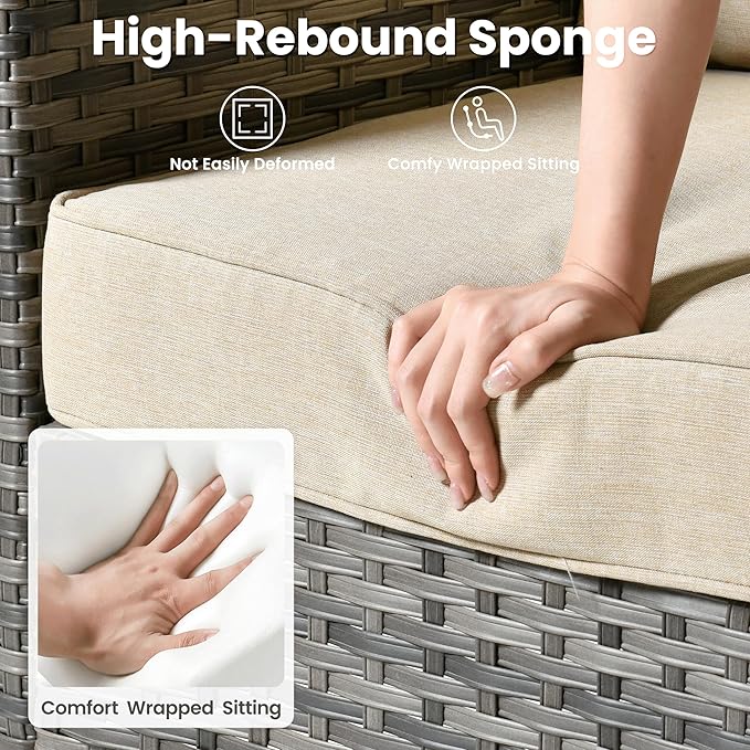 - Thickened Cushions: High-density foam cushions provide superior comfort, while the removable cushion covers are waterproof, weather resistant, wear resistant, easy to clean, perfect for easy maintenance in any outdoor setting