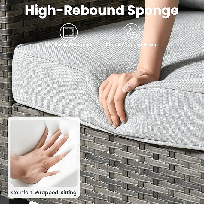 - Thickened Cushions: High-density foam cushions provide superior comfort, while the removable cushion covers are waterproof, weather resistant, wear resistant, easy to clean, perfect for easy maintenance in any outdoor setting