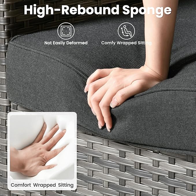 - Thickened Cushions: High-density foam cushions provide superior comfort, while the removable cushion covers are waterproof, weather resistant, wear resistant, easy to clean, perfect for easy maintenance in any outdoor setting