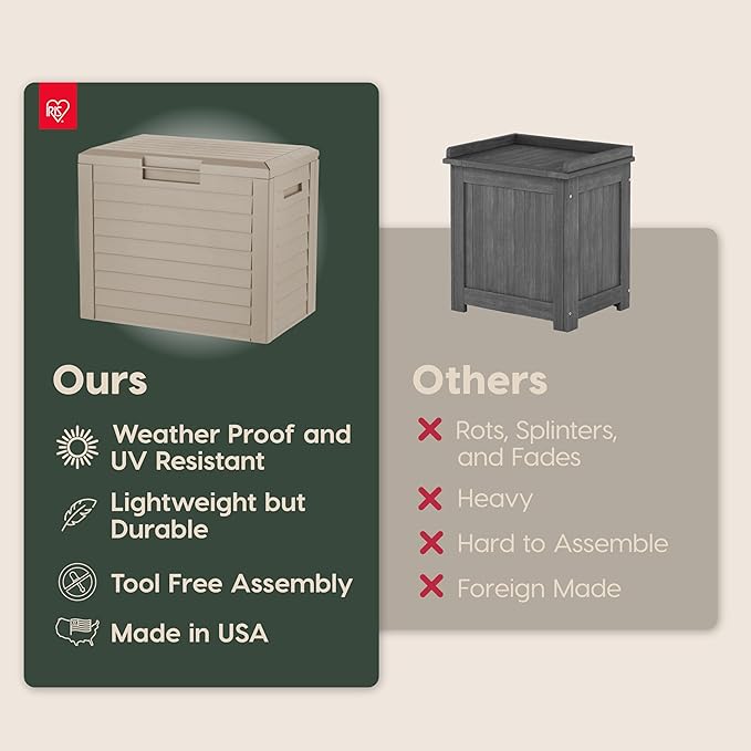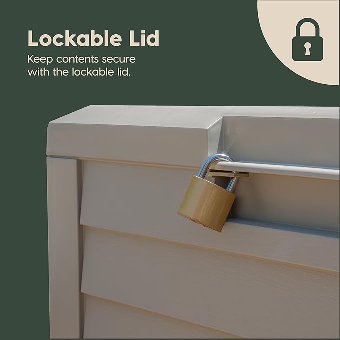 - WEATHERPROOF OUTDOOR STORAGE: The weather-resistant 35-gallon deck box with UV protection serves as a storage and delivery box, keeping items dry, secure, and hidden, safeguarding packages, pool supplies, and outdoor items from rain, sun, and dust.