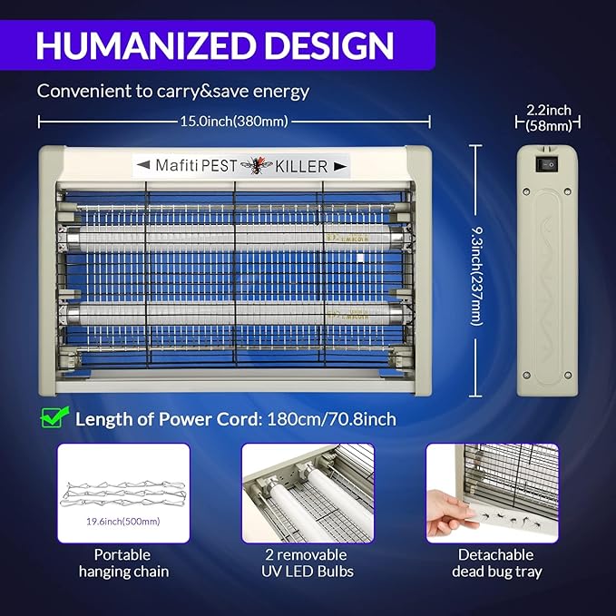 mafiti Electric Bug Zapper, Powerful 20w Fly Zapper Traps Indoor Electric Mosquito Zapper Fly Killer Gnats Fruit Trap for Home Restaurants Kitchen Garden 2Pack