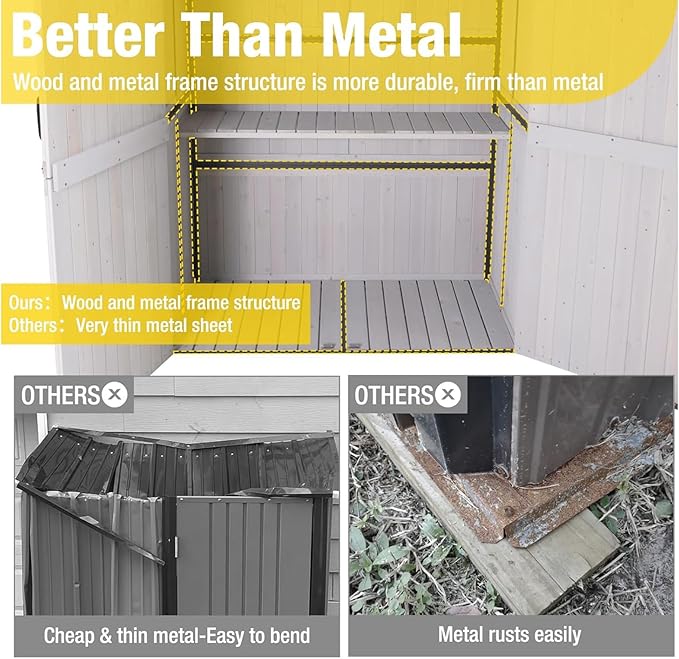 - Durable And Sturdy: Solid fir wood with a reinforced metal frame for long-lasting use, making this shed highly durable