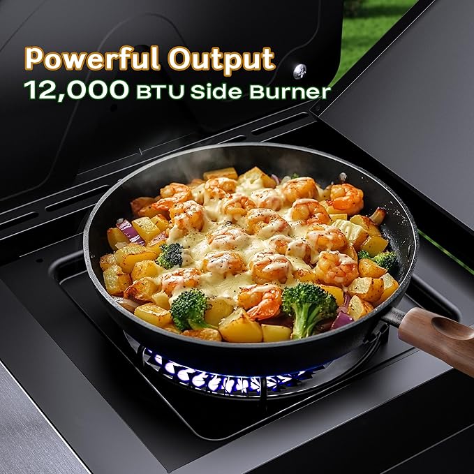 - Versatile Cooking Power: Equipped with 52,000 BTU stainless steel burners, this grill offers dynamic cooking potential with a side burner for additional versatility in food preparation
