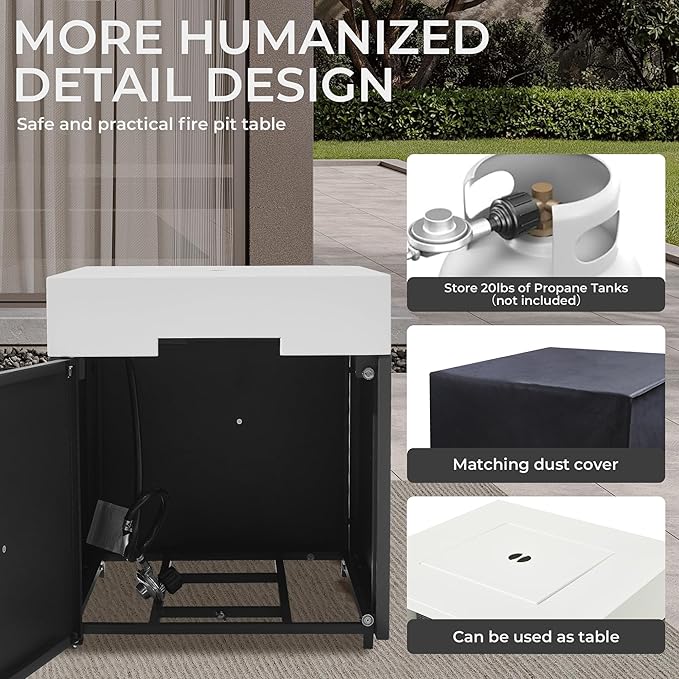 - SAFETY & SIMPLICITY AT ITS BEST: Peace of mind is built in! Each fire pit table is CSA-certified and rigorously tested for safety. The setup is a breeze—just attach the propane tank, and you’re ready to enjoy a fire in under a minute!