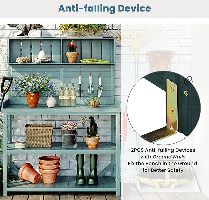- π§° 2 Drawers & Cabinet for Hidden Storage: Keep your workspace tidy with two smooth-gliding drawers for tools, gloves, or seeds. A central cabinet with removable shelf is perfect for larger items like fertilizer bags or extra planters.