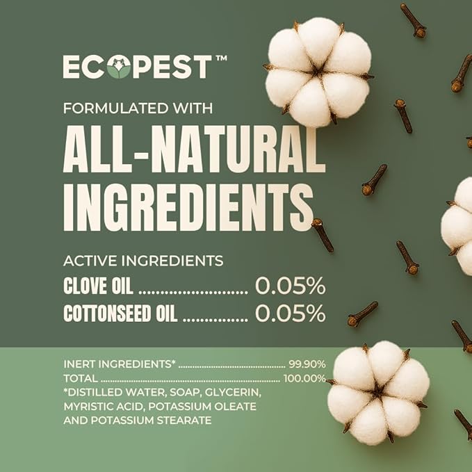 - ALL-NATURAL FORMULA, FAMILY AND PET FRIENDLY – Tough on bed bugs, gentle on you. Formulated with natural essential oils like clove oil and cottonseed oil, this bed bug spray kills on contact without exposing your home to harsh chemicals. Free from synthetic pyrethroids, neurotoxic ingredients, and endocrine disruptors commonly found in traditional insecticides. Safe for use around children and pets. Ideal for mattresses, furniture, luggage, baseboards, and more. Eco-friendly, biodegradable, and effective—trusted pest control without compromise.
