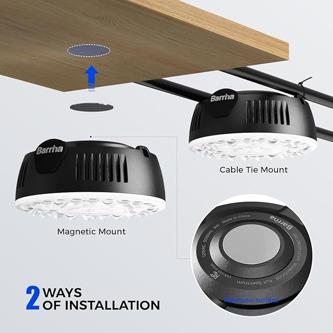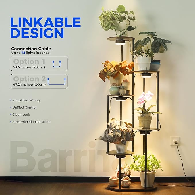 - Linkable & Flexible Mounting Options: The Barrina Orbgrow OG09 grow light connects up to 12 LED grow lights with 7.87 inches and 47.24 inches cables. It offers flexible mounting options, including magnetic mounts or zip ties, for easy installation. This design enhances both aesthetics and functionality in any space