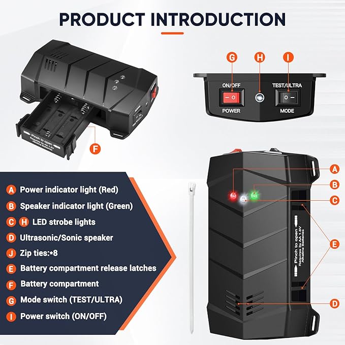 - ADVANCED RODENT GUARD: Protect your vehicle the smart way with this powerful car rodent deterrent that emits high-pitched ultrasonic noise paired with pulsating strobe lights. Ideal for use under the hood, it creates a harsh environment for rodents, chipmunks, and squirrels—helping stop wire-chewing damage before it starts