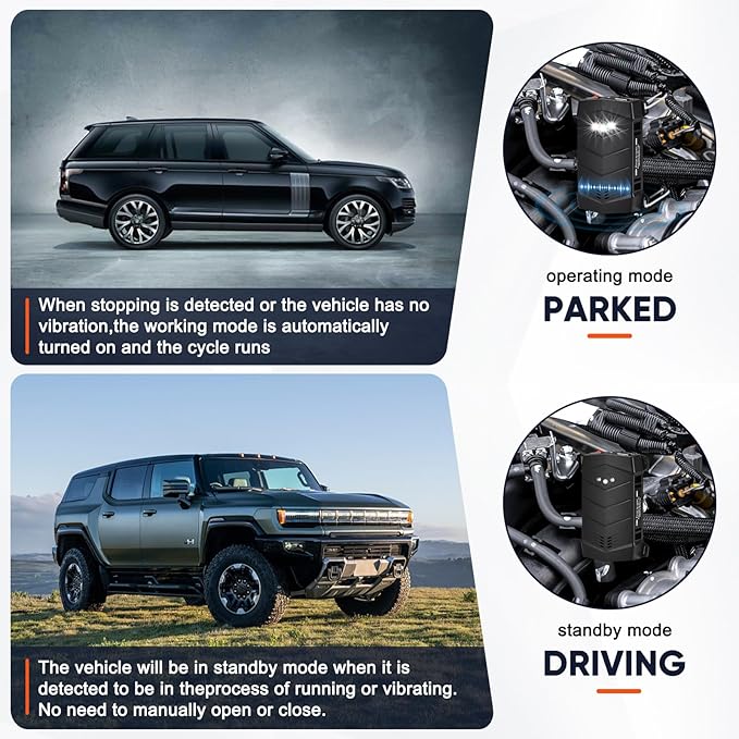 - SMART POWER MANAGEMENT: This under-hood rodent repeller features intelligent energy-saving technology—it goes into standby mode while the engine is running and reactivates once the car is parked. Designed to protect your vehicle without draining the battery, it offers continuous pest defense in an efficient, power-conscious way