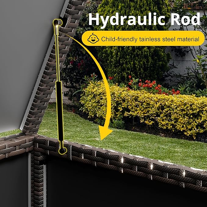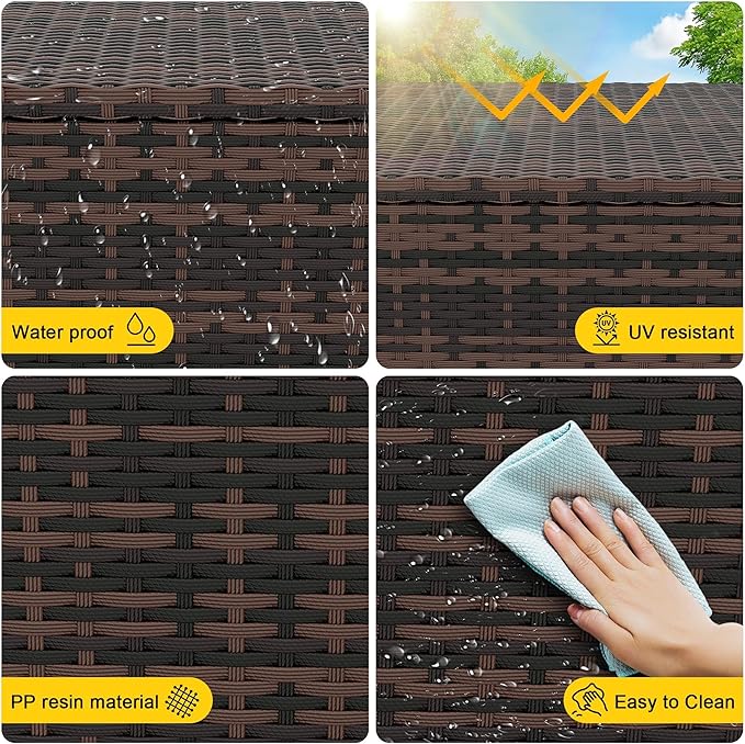 - Sleek Aesthetic: The elegant wicker design complements any outdoor decor, making it a chic addition to your home. Use it as an outdoor storage trunk or a decorative piece in your indoor space