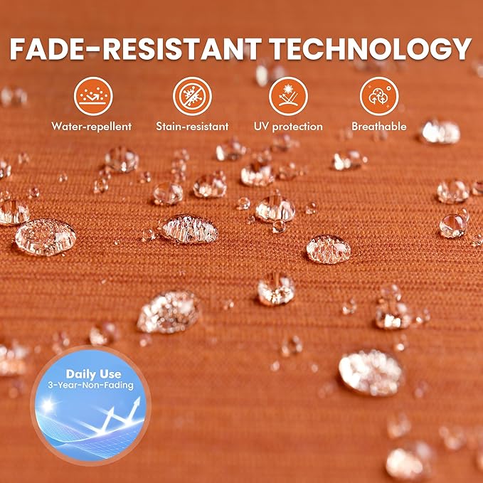 - Weatherproof Fabrics, Zero Hassle:The wicker conversation set features quick-dry, stain-repellent cushions. High-density foam retains its shape season after season, while breathable fabric ensures cool comfort. (Pro tip: Use a dust cover when stored to prolong the lifespan of your outdoor furniture set.)