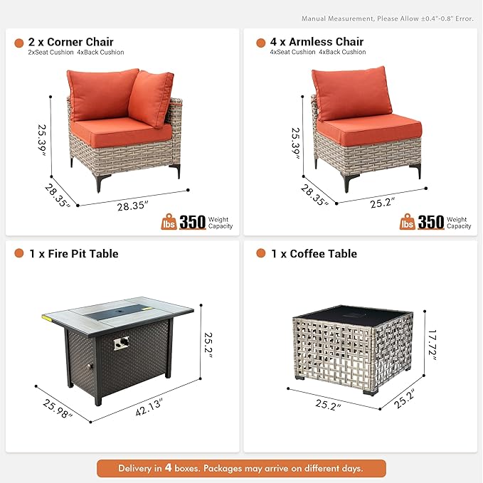 - All-Weather Patio Modular Sectional Sofa Set:Built to last, our All-Weather Patio Modular Sectional Sofa Set is crafted with premium, handwoven PE rattan, designed to withstand rain, snow, and blazing sun. Whether hosting guests or relaxing solo, this patio conversation set — including the outdoor sofa and chair — resists stains and is water-repellent, ensuring effortless maintenance for a pristine backyard oasis