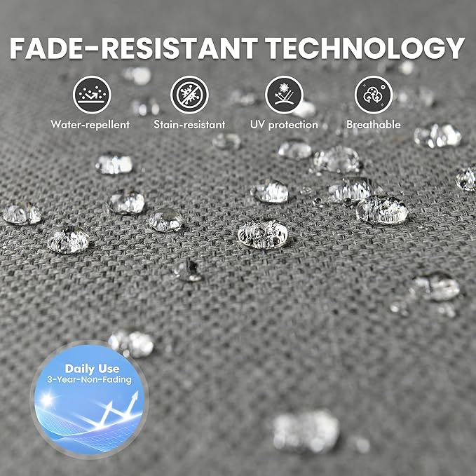 - Weatherproof Fabrics, Zero Hassle:The wicker conversation set features quick-dry, stain-repellent cushions. High-density foam retains its shape season after season, while breathable fabric ensures cool comfort. (Pro tip: Use a dust cover when stored to prolong the lifespan of your outdoor furniture set.)