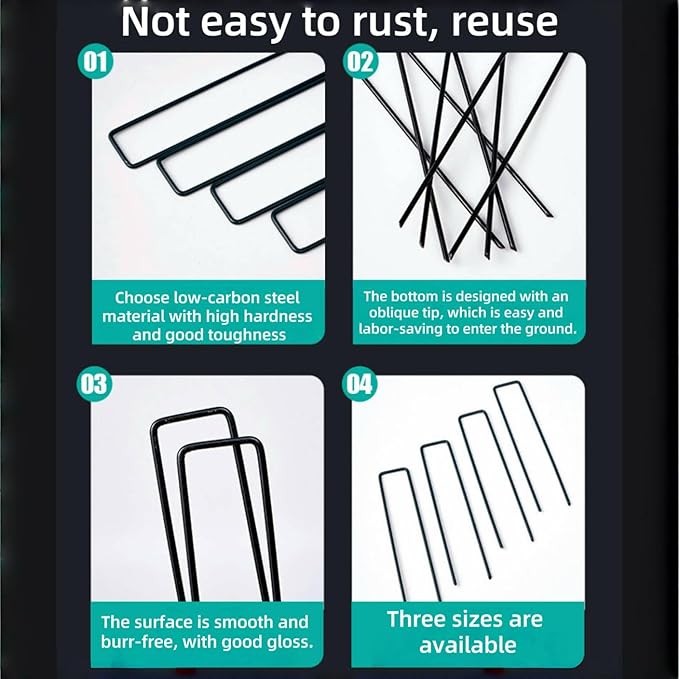 - Anti-rust Durable Galvanized Steel: The U-Shaped Landscape Pins are made of heavy duty anti-rust durable galvanized steel which can be store and reusable them for many years.The landscape staples wonโt be bend when it was inserted into the ground with adjustable width.