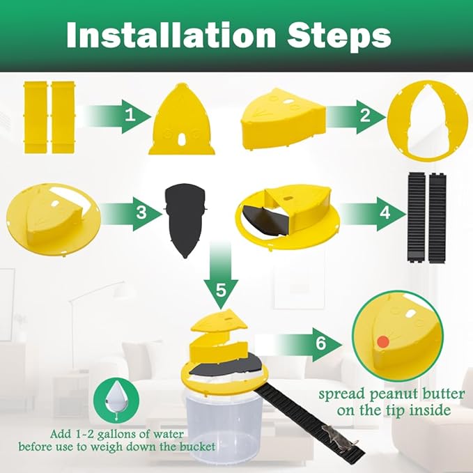 - IV. Easy to use and worry-free: Install it on a standard 5-gallon bucket (prepare the bucket by yourself). You can easily catch mice and rats. Putting about 1 gallon of water in the bucket can prevent mice from escaping and increase the success rate. Avoid dealing with dirty mice trapped in traditional traps. You can release or dispose of mice without coming into contact with the mess. All kinds of mousetraps make it easy to control rodent infestations.
