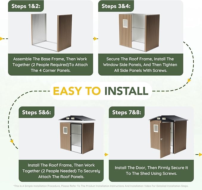 - Weather-Resistant Steel Construction: Made of high-quality galvanized steel, this shed is rust-proof, waterproof, and built to withstand various weather conditions for long-term durability.
