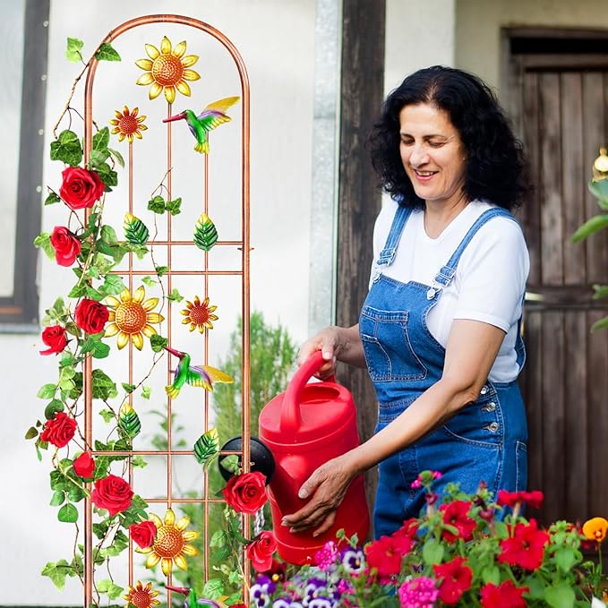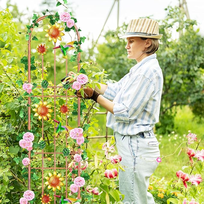 - 【Unique Design Garden Trellis】This iron trellis design combines the elements of plants and animals, built into the design are delicate leaf, sunflower, hummingbird. The unique design and bright colors add vibrant atmosphere to your patio