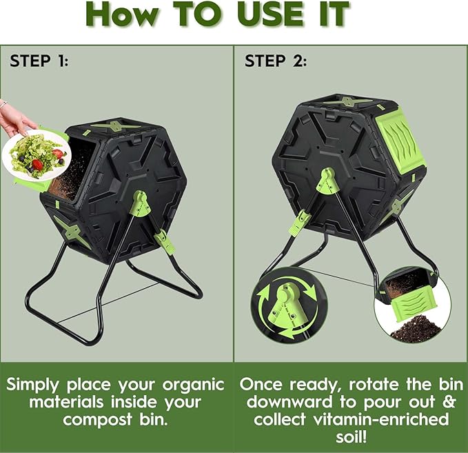 - Effortless Tumbling Composter:360° rotating compost bin design accelerates decomposition - get nutrient-rich compost in just 4-6 weeks.
