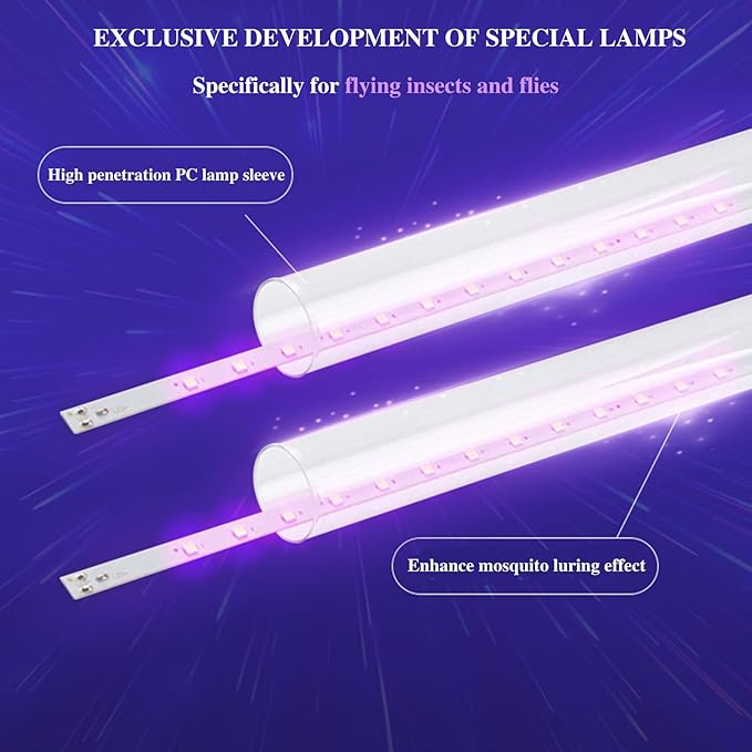 - Wide 360Β° working coverage: The double-sided design of the insect killer can cover a vast space, ensuring effective attraction and elimination of insects from all angles. It can even control pests and environmental lighting 360Β° in both indoor and outdoor environments