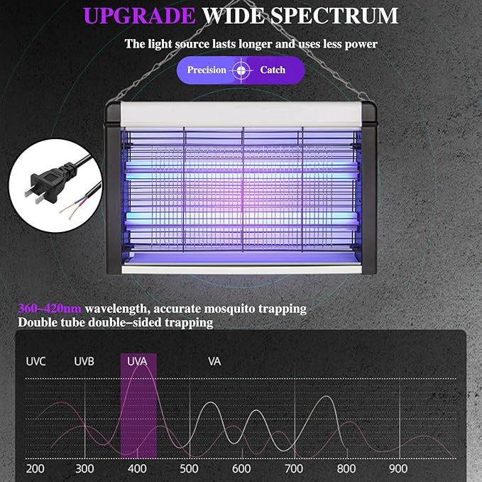 - Ultra-safe and quiet operation: The mosquito killer is designed to be EPA-certified, featuring a 0.3-inch child/pet-proof mesh gap and a fire-resistant ABS housing. Work at a noise level of less than 25dB (quieter than a whisper), and sleep undisturbed at home.