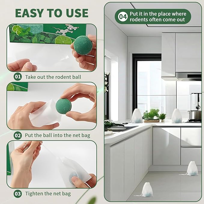- Natural peppermint oil formula, safe mouse repellent without chemical hazards: interferes with rodent senses through smell, non-toxic, pesticide-free, say goodbye to the dangerous residues of traditional chemical agents. 24 individually packaged, suitable for long-term protection in multiple scenes throughout the house