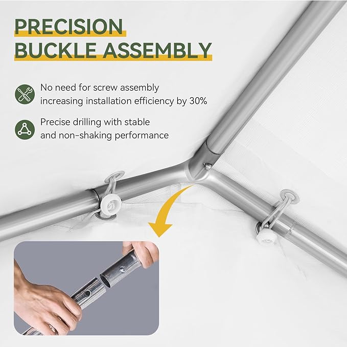 - Quick Tool-Free Assembly: No tools required! Each numbered part connects seamlessly with clear instructions. Set up this carport shelter in minutes, ideal for temporary or semi-permanent storage solutions. Compact yet robust, itās your go-to hassle-free shelter!