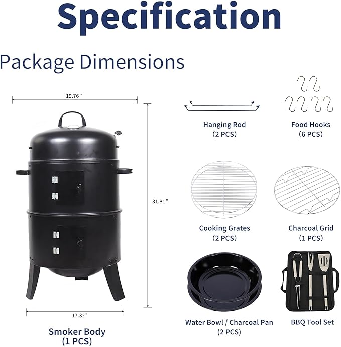 - Easy to Assembly & Easy Cleanup: Simple 3-layer structure, easy to assemble. Removable cooking grates and water pans make cleaning a breeze, ensuring more time for enjoying your delicious creations.