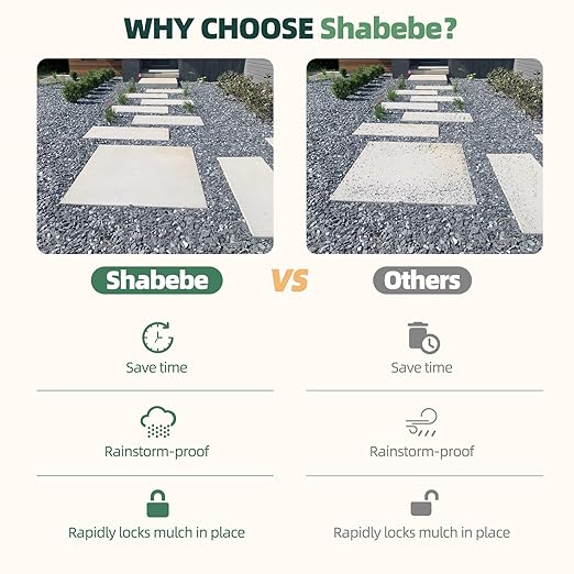 - 【Reliable & Weather-resistant】All Shabebe Mulch Anchor products have a 100% satisfaction guarantee. This mulch adhesive minimizes erosion due to intense rainfall and even prevents leaf blowers from dispersing your mulch. Simplify your life and put an end to the continuous sweeping and maintenance of your landscape!