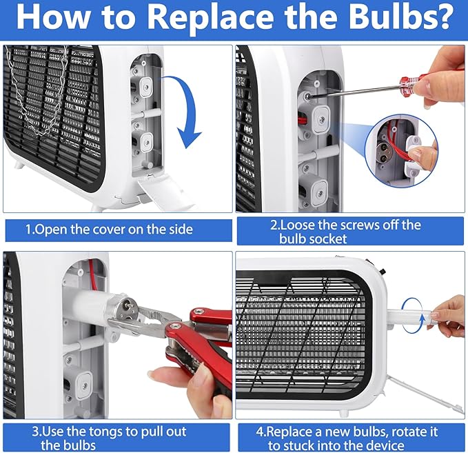 - Safe and Protective Design: Both Sides of the bug light trap indoor feature with protective mesh screen to avoid accidental touch the high-voltage grid, reduce safety risks and protect the safety of family members, children and pets, making it a reliable mosquito killing solution for home use