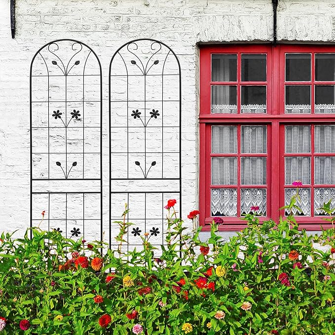 - Multi-purpose Metal Garden Trellis: This outdoor garden trellis is perfect for supporting all kinds of flowering trellis plants, wall-climbing vines, cucumber, grape,etc. It allows them to grow naturally up towards the top.