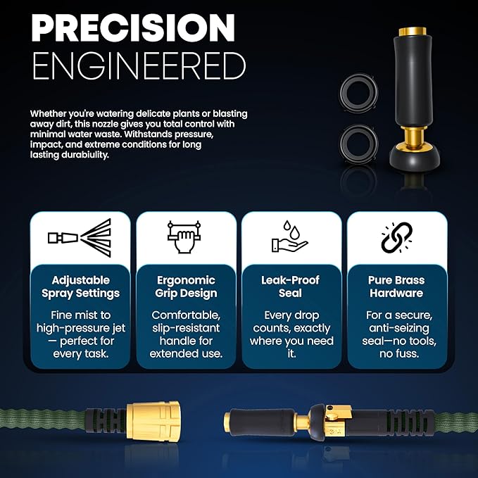 - [Feather-Light, Super Strong] Redefining watering with its incredibly lightweight design, experience unmatched watering efficiency with our Titan garden hose. When paired with our precision-engineered nozzle, this hose delivers exceptional pressure for everyday watering tasks while saving you water. Ideal for garden maintenance, vehicle cleaning, RV, marine use and more, for a powerful and consistent water flow.