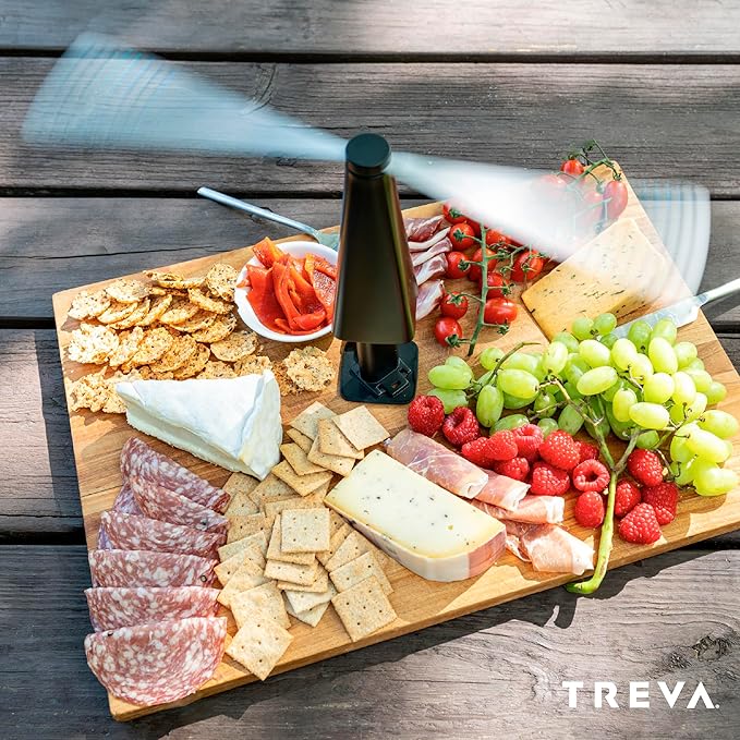 Treva Bug Fan Fly Deterrent with Adjustable Height and Holographic Blades, Telescoping Battery Powered Fly Fan to Clear Bugs, Mosquitoes, and Flies