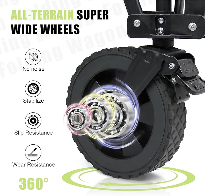 - 7" All-Terrain Wheels with Brakes: 7-inch wide wheels conquer sand, grass, and pavement effortlessly. Built-in central brake locks all wheels on slopes—no more runaway utility cart worries!