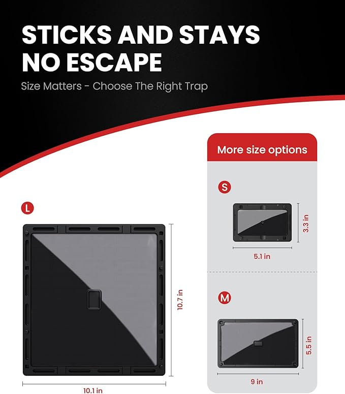 - All-in-One Pest Control: Flat, discreet design traps mice, rats, roaches, snakes, spiders, lizards, and even centipedes. Perfect for kitchens, basements, garages, restaurants, attics, and storage rooms—anywhere you don’t want poisons or snap traps. Got multiple rats or bigger pests like snakes or reptiles? Go with the jumbo traps for stronger, more effective control.