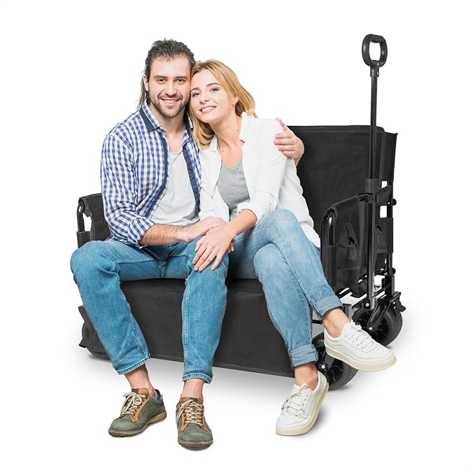 - 【EXTRA LARGE CAPACITY】With a robust 500lbs weight capacity and a spacious 225L storage compartment, this Wagon Loveseat for camping can easily carry shopping goods, camping gear, or gardening tools, reducing the trouble of picking up luggage multiple times. It provides reliable transport support for families and outdoor enthusiasts.