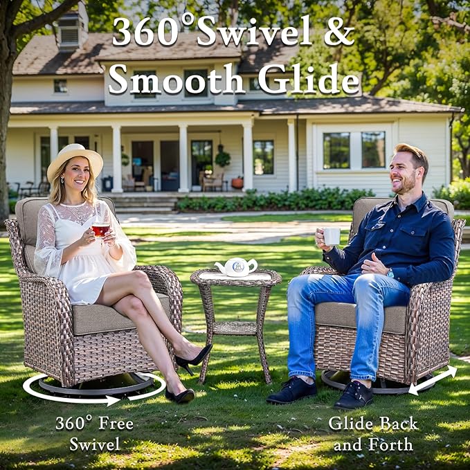 - 【Worry-Free Support】For large orders like complete patio furniture set with swivel glider chairs, we deliver them with multi-box. All components of outdoor furniture meet ASTM safety standards and include 3-year structural warranty coverage.