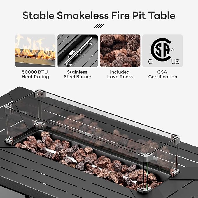 - 【Patio Set with Fire Pit Table】9 PCS Patio Furniture Set includes: 4 swivel patio chairs + 1 sofa + 2 ottoman + 1 side table + a 43" rectangle fire pit table. From compact patio setups to large poolside patio or yard, our outdoor furniture adapts to any space to create comfort and cohesive leisure areas.